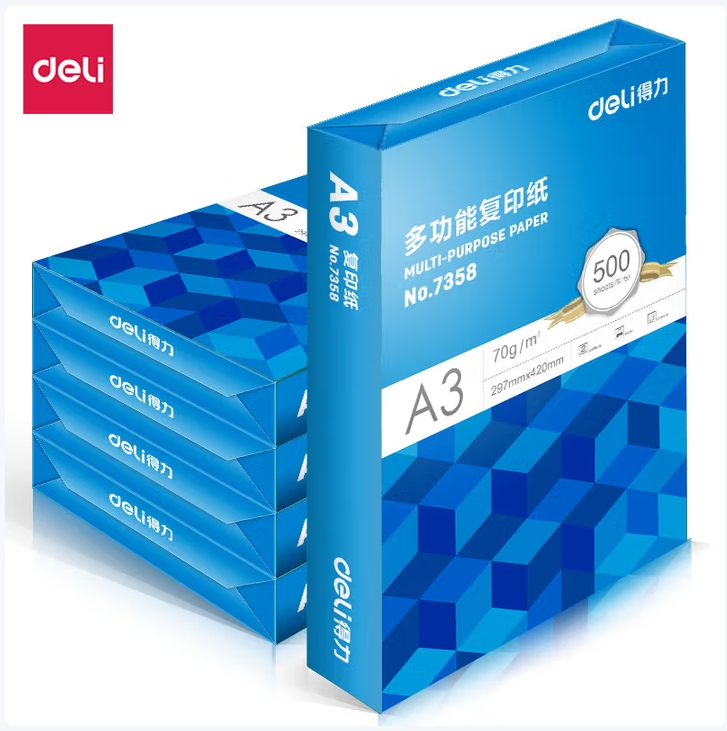 • 得力/deli 7396 复印纸 A3 70g 500张/包 单包装